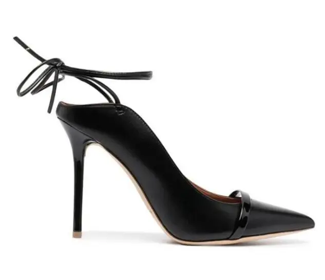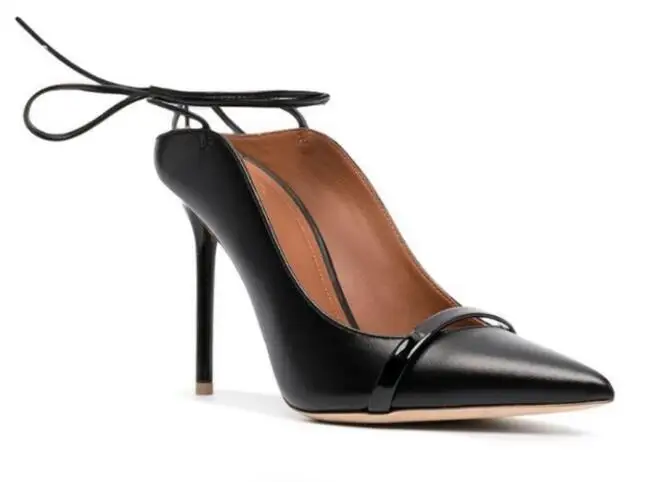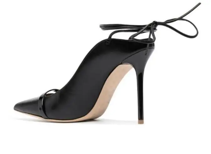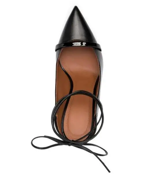 Woman High Heel Shoes Black Leather Pointed Toe Stiletto Heels Lace-Up Party Dress Shoe Runway Pumps
